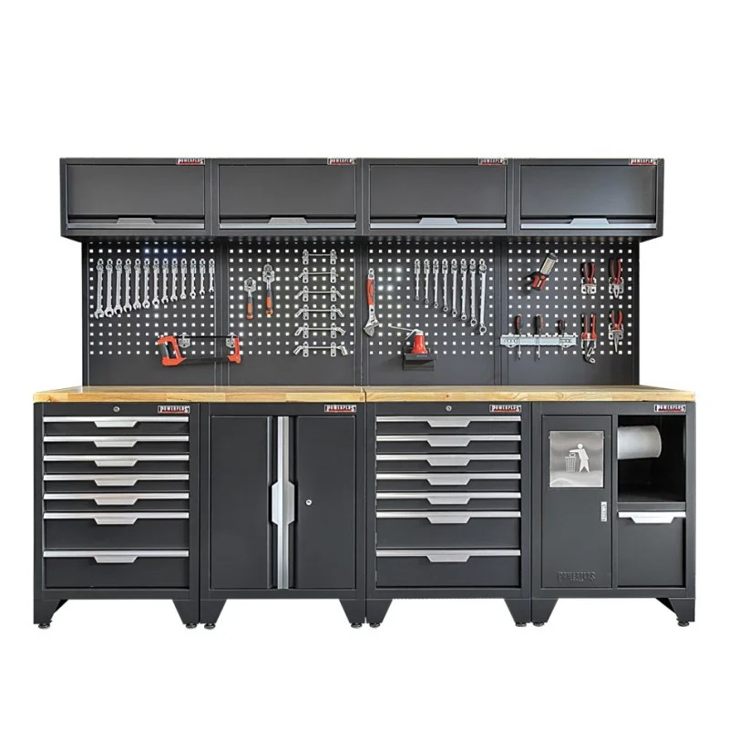 Gereedschapskasten set wandlengte 272 cm. tweedeurs kast, 7 laden kasten, hangkasten, gereedschapsbord, matzwart .