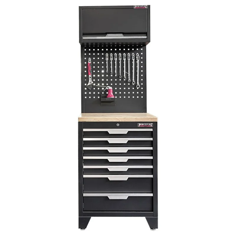 Gereedschapskasten set wandlengte 68 cm. 7 laden kast, hangkast, gereedschapsbord matzwart .