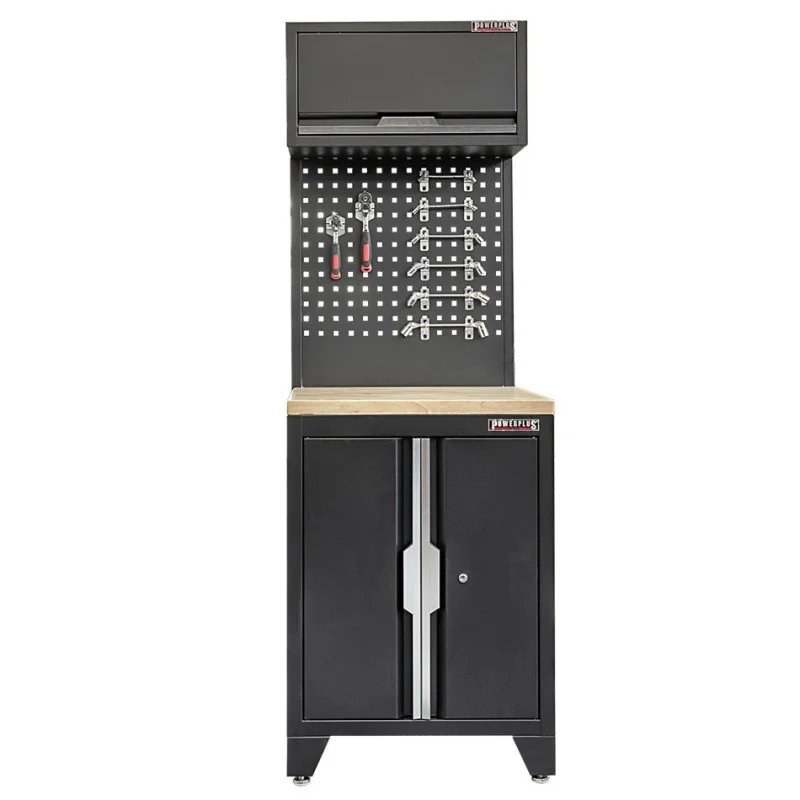 Gereedschapskasten set wandlengte 68 cm. lage tweedeurs kast, hangkast, gereedschapsbord matzwart .