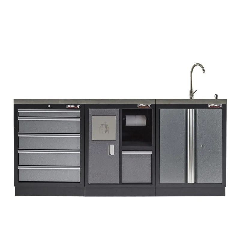 Plus Werkplaatskast met 2 deuren inclusief zeeppomp, RVS wasbak en RVS kraan.