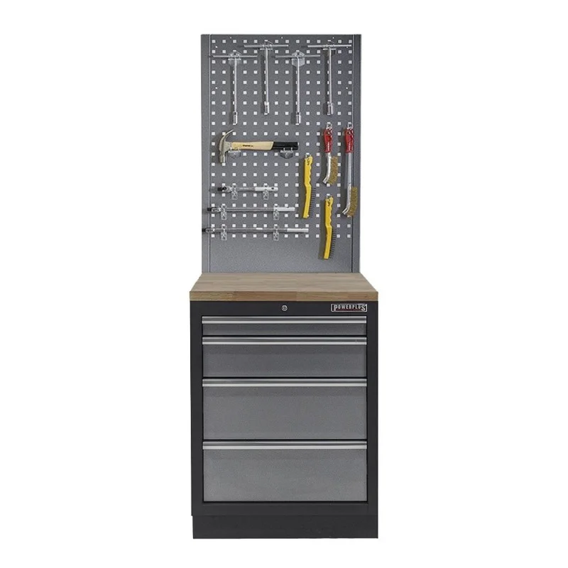 Werkplaatskast met vier laden, hardhouten werkblad + gereedschapsbord - 68 x 46 x 200 cm