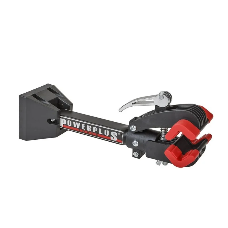 Handige muurbeugel / fietsophangsysteem voorzien van een inklapbare dragende steun voor het ophangen van een racefiets of mountainbike.