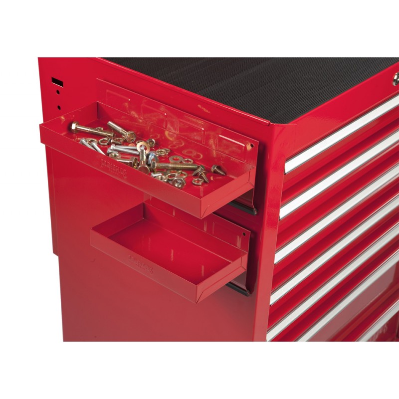 4 handige metalen bakjes welke eenvoudig aan gereedschapswagen of gereedschapsbord kunnen worden bevestigd d.m.v. magneten. Afmetingen: 14,5 x 11,5 x 3 cm. 21 x 11,5 x 3 cm. 27 x 11,5 x 3 cm. 31 x 11,5 x 3 cm. Achterplaat 12 cm hoog met magneten en rubberen bescherming.