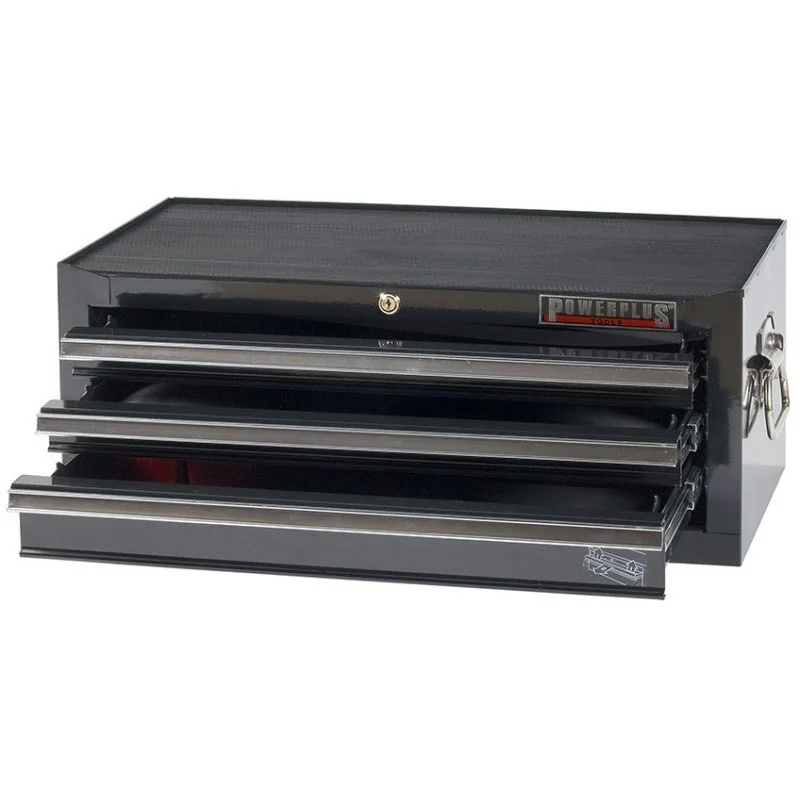 Gereedschapskist matzwart met drie laden voorzien van ladenblokkering