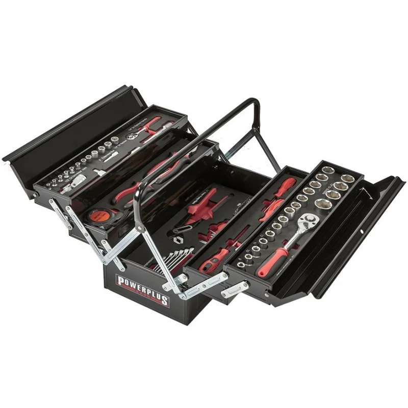 Metalen kist met gereedschap - uitklapbaar met 86 gereedschappen in foam inleg