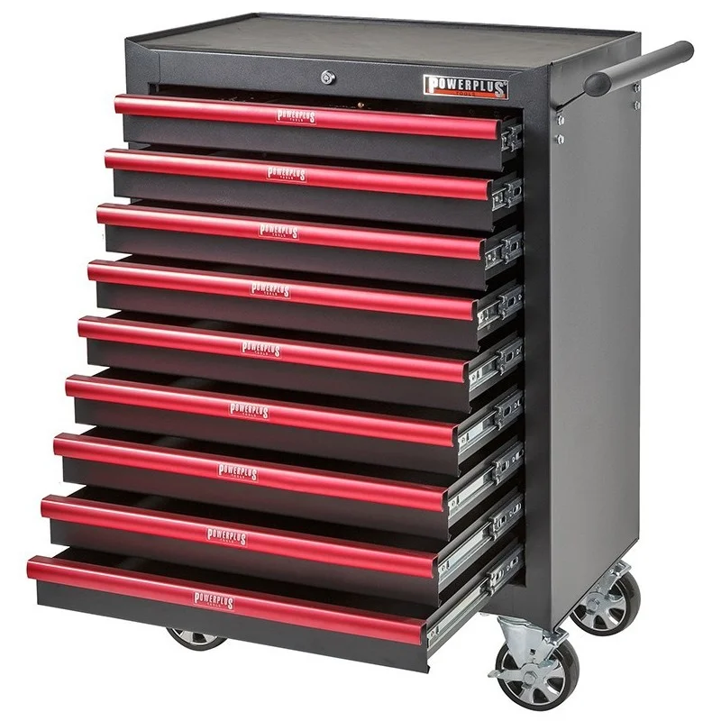 Degelijke gereedschapswagen met 9 kogelgelagerde laden.