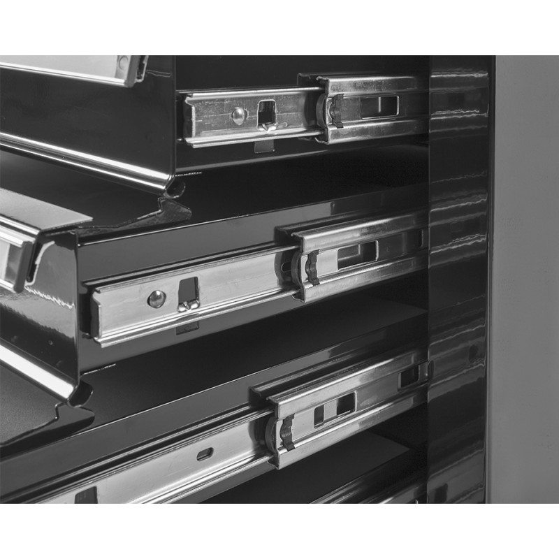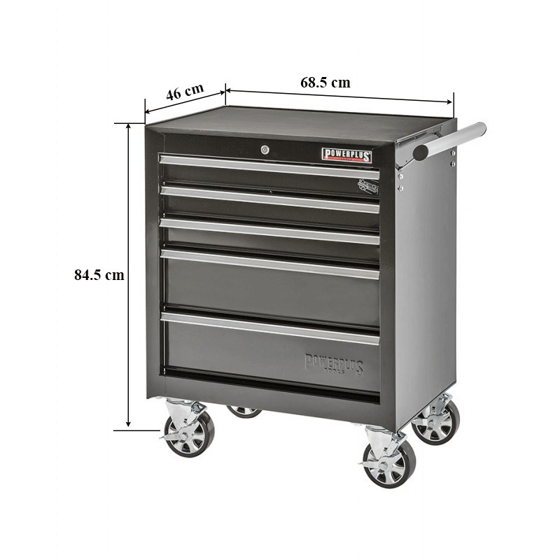 Gereedschapswagen met 5 kogelgelagerde laden en uniek snelsluitsysteem per lade.