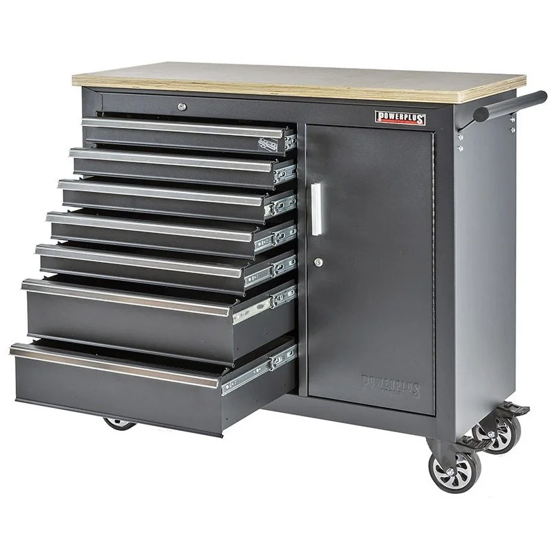 Grote professionele mat zwarte gereedschapswagen – werkbank op wielen – verrijdbare werkbank