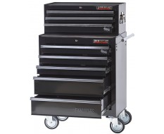 Combinatie voordeel met deze set: Zeer degelijke gereedschapswagen met 8 laden. Kleur: zwart. Tevens in het rood leverbaar. Voorzien van kunststof matten in de laden. Afmeting incl. wielen: 72 x 48 x 101 cm. Afmeting incl. wielen en handgreep: 78 x 48 x 101 cm. Afm. Laden (binnenmaat): 7 x 56,5 x 40 x 6 cm. 1 x 56,5 x 40 x 14 cm.