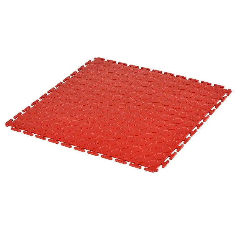PVC kliktegel rood 500 x 500 x 6 mm. - Industriële werkplaatstegel met ronde noppen