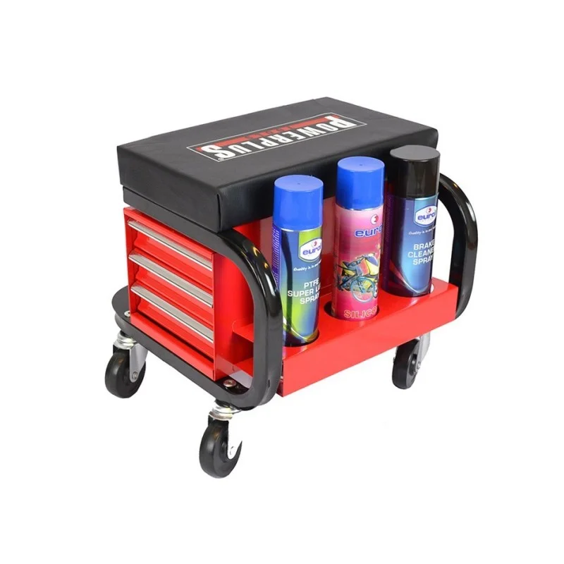 Comfortabel uw auto, motorfiets of fiets poetsen, laswerkzaamheden uitvoeren of aan een voertuig sleutelen met deze verrijdbare werkplaatskruk.