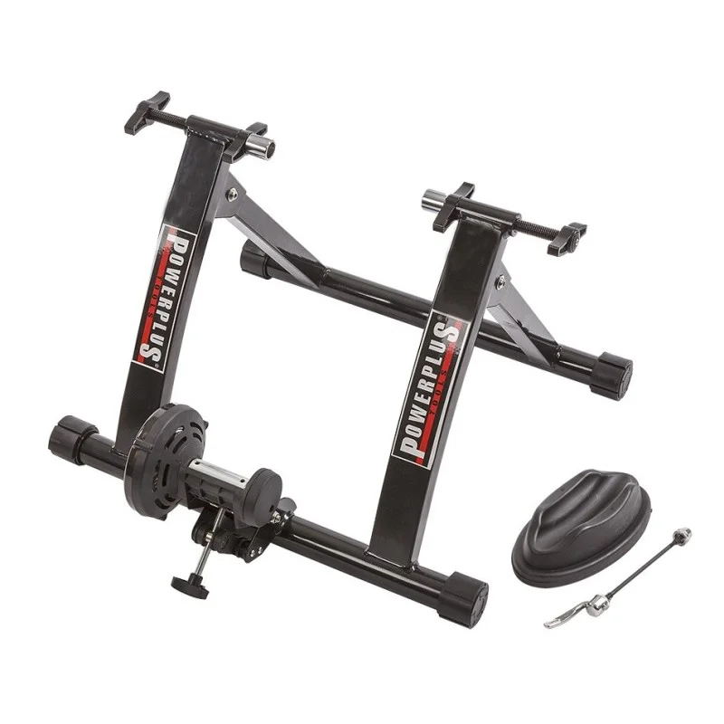 De Powerplustools PP-T 0562 is een degelijke bijzonder gunstig geprijsde fietstrainer. Met een knop op de unit waarop het achterwiel rust kan het systeem traploos worden afgesteld. Zodra u begint te trappen creëert het magneetsysteem een natuurlijke weerstand.
