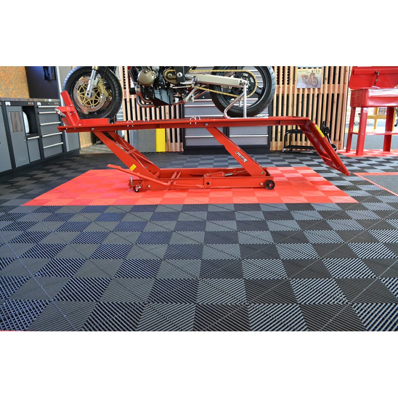 Deze werkplaatstegels zijn eenvoudig te leggen en geschikt voor nagenoeg iedere ondergrond zoals beton, tapijt, hout of tegelvloer maar ook op een vlakke ondergrond van gras (afhankelijk van de weersomstandigheden). Een gemakkelijk mee te nemen accessoire voor caravan of camper. Als optie zijn bijpassende oploopranden en hoekstukken leverbaar.