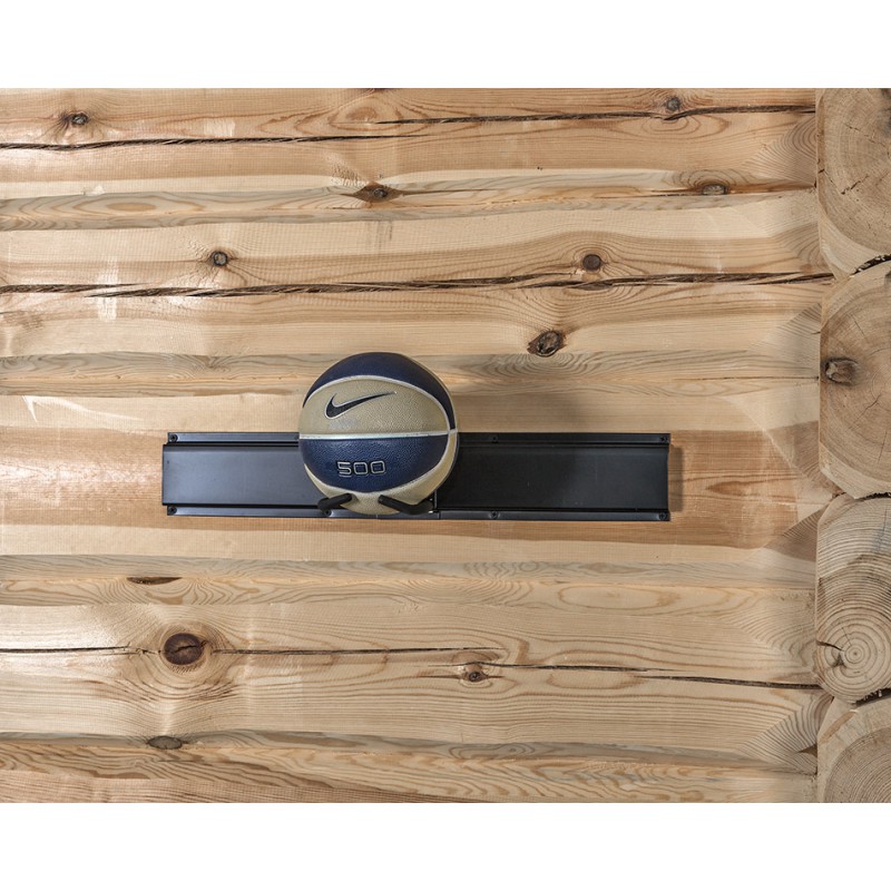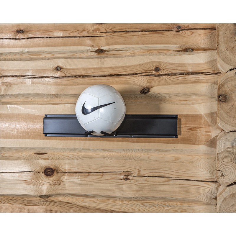 Peervormige dubbele wandhaak van verzinkt materiaal met daaroverheen een hoogwaardige poedercoating en beschermende zachte coating van Ø 12 mm. voor het opbergen van voetbal, rugbybal of anderszins rond attribuut.