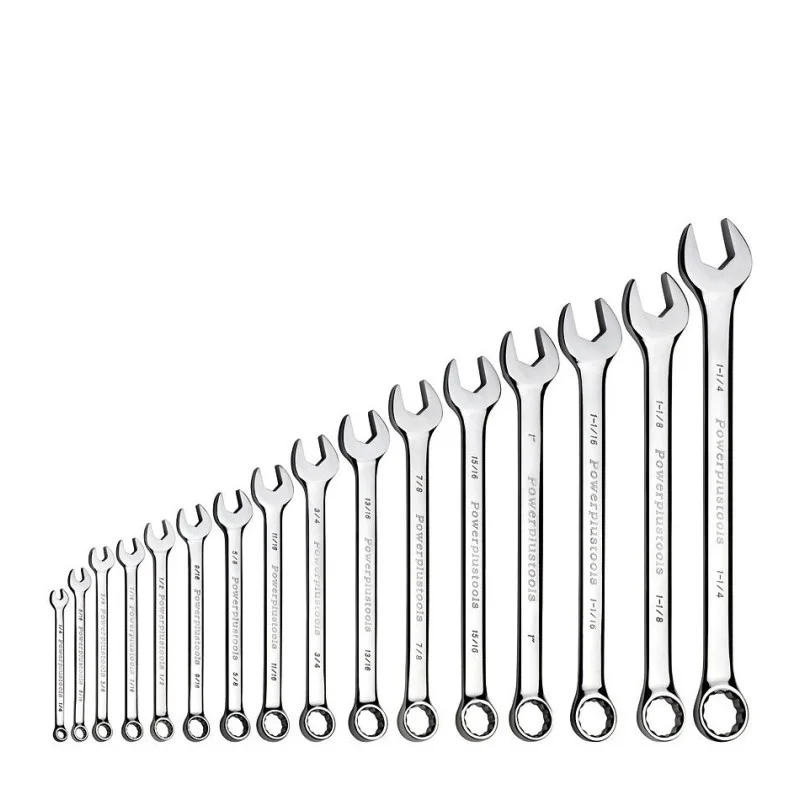 Maten: 1/4, 5/16, 3/8, 7/16, 1/2, 9/16, 5/8, 11/16, 3/4, 13/16, 7/8, 15/18, 1, 1 1/16, 1 1/8, 1 1/4".