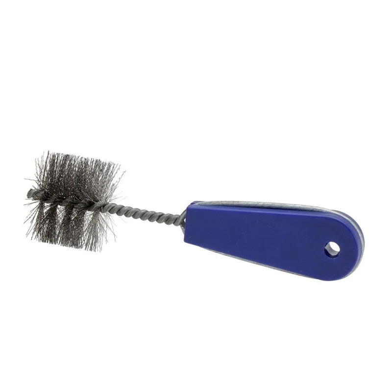 Degelijke fittingborstel met borstelharen van gegolfd staaldraad.