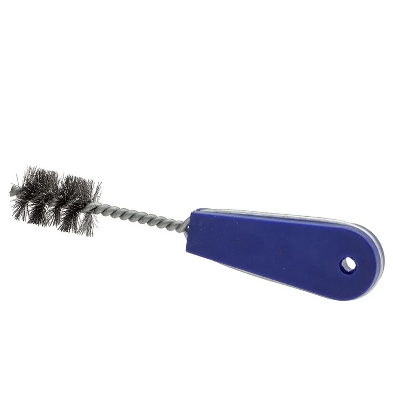 Degelijke fittingborstel met borstelharen van gegolfd staaldraad.