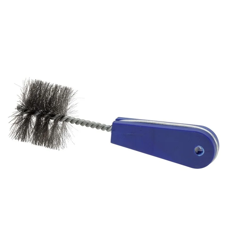 Degelijke fittingborstel met borstelharen van gegolfd staaldraad.