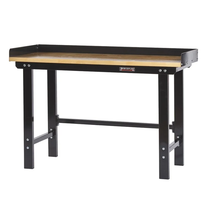 Topkwaliteit werkbank van Powerplustools met oerdegelijk ijzeren frame en poten van dikwandig kokerprofiel (80 x 40 mm.) Deze professionele zware werkbank wordt geleverd inclusief een glad gelakt vingerlas verlijmd hardhouten blad van 3,6 cm. dik. Een ideale stalen werkbank voor school, autogarage, werkplaats, particulier. Deze industrieel inzetbare werkbank is verkrijgbaar in de kleuren rood en zwart. De hoogwaardige poedercoating is UV bestendig en het frame wordt samen geschroefd met gegalvaniseerde bouten en moeren (boutkwaliteit 4.8 )