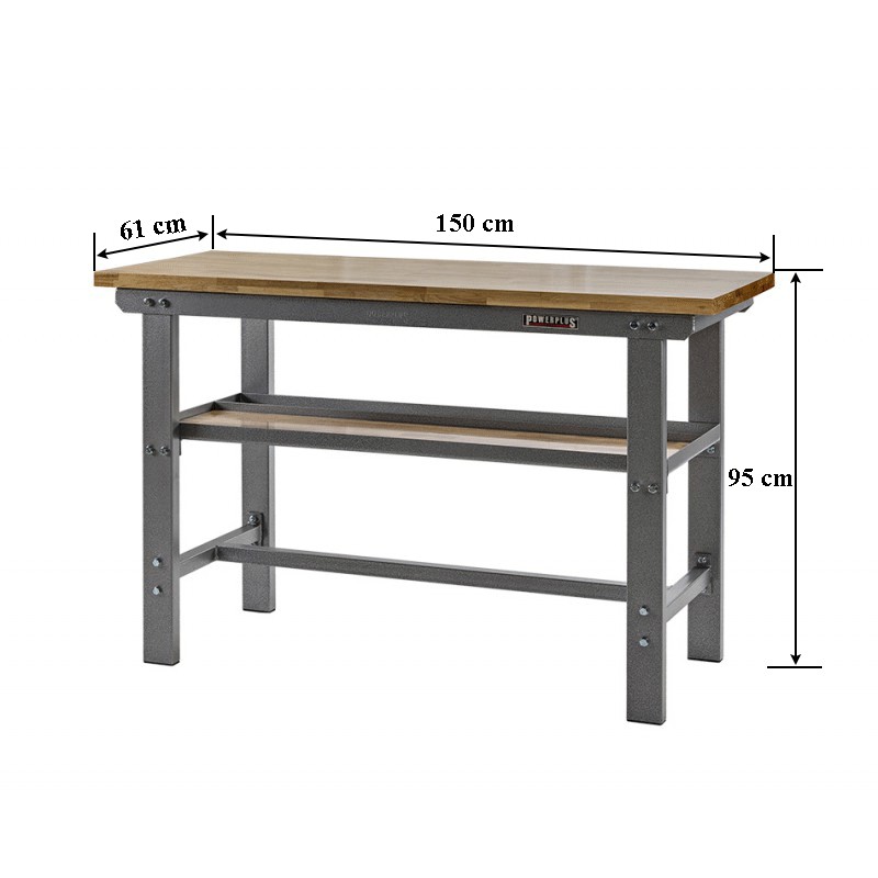 Topkwaliteit werkbank van Powerplustools met oerdegelijk ijzeren frame en poten van dikwandig kokerprofiel (80 x 40 mm.) Deze professionele zware werkbank wordt geleverd inclusief een glad gelakt vingerlas verlijmd hardhouten blad van 3,6 cm. dik. Een ideale stalen werkbank voor school, autogarage, werkplaats, particulier. Deze industrieel inzetbare werkbank is verkrijgbaar in de kleuren rood en zwart. De hoogwaardige poedercoating is UV bestendig en het frame wordt samen geschroefd met gegalvaniseerde bouten en moeren (boutkwaliteit 4.8 )