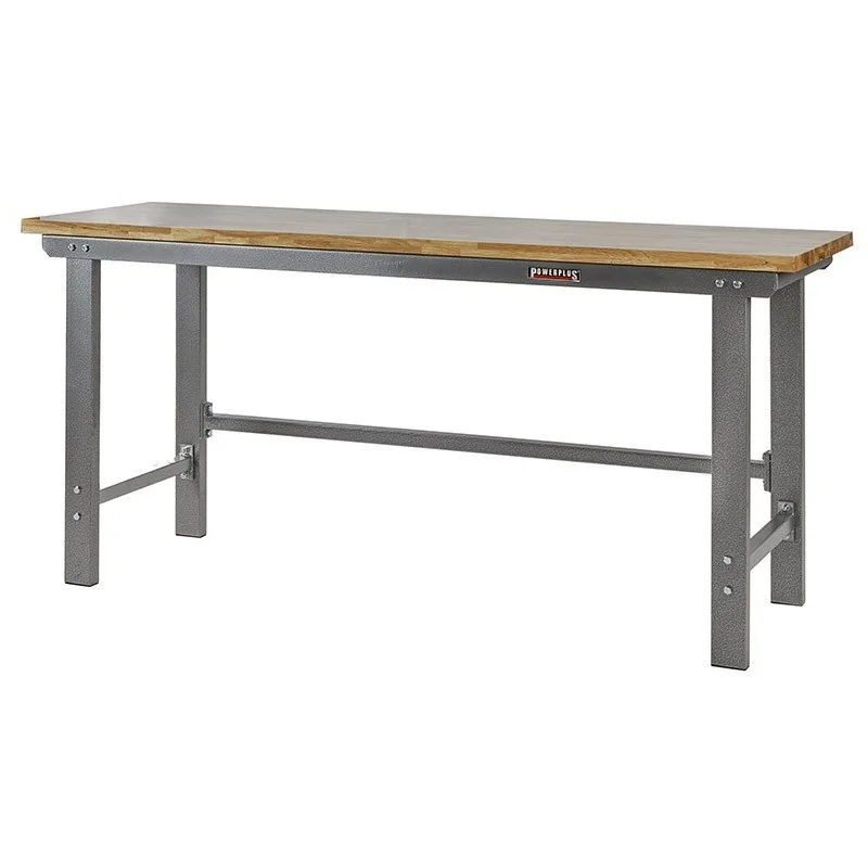 Topkwaliteit werkbank van Powerplustools met oerdegelijk ijzeren frame en poten van dikwandig kokerprofiel (80 x 40 mm.) Deze professionele zware werkbank wordt geleverd inclusief een glad gelakt vingerlas verlijmd hardhouten blad van 3,6 cm. dik. Een ideale stalen werkbank voor school, autogarage, werkplaats, particulier. Deze industrieel inzetbare werkbank is verkrijgbaar in de kleuren grijs en zwart. De hoogwaardige poedercoating is UV bestendig en het frame wordt samen geschroefd met gegalvaniseerde bouten en moeren (boutkwaliteit 4.8 )