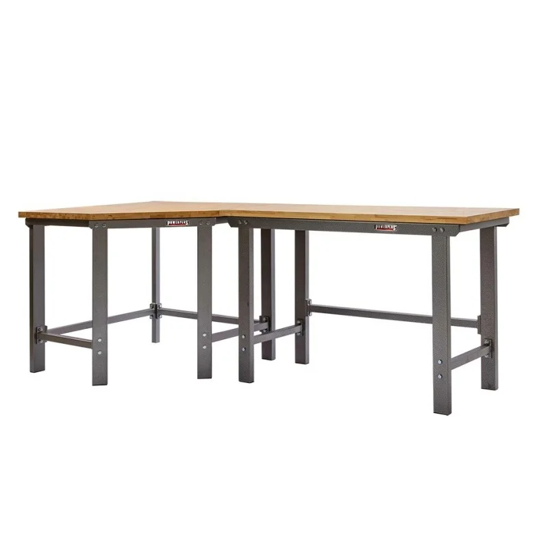 Werkbank hoekopstelling - Hoek werkbank 260 cm lang grijs met hardhouten blad
