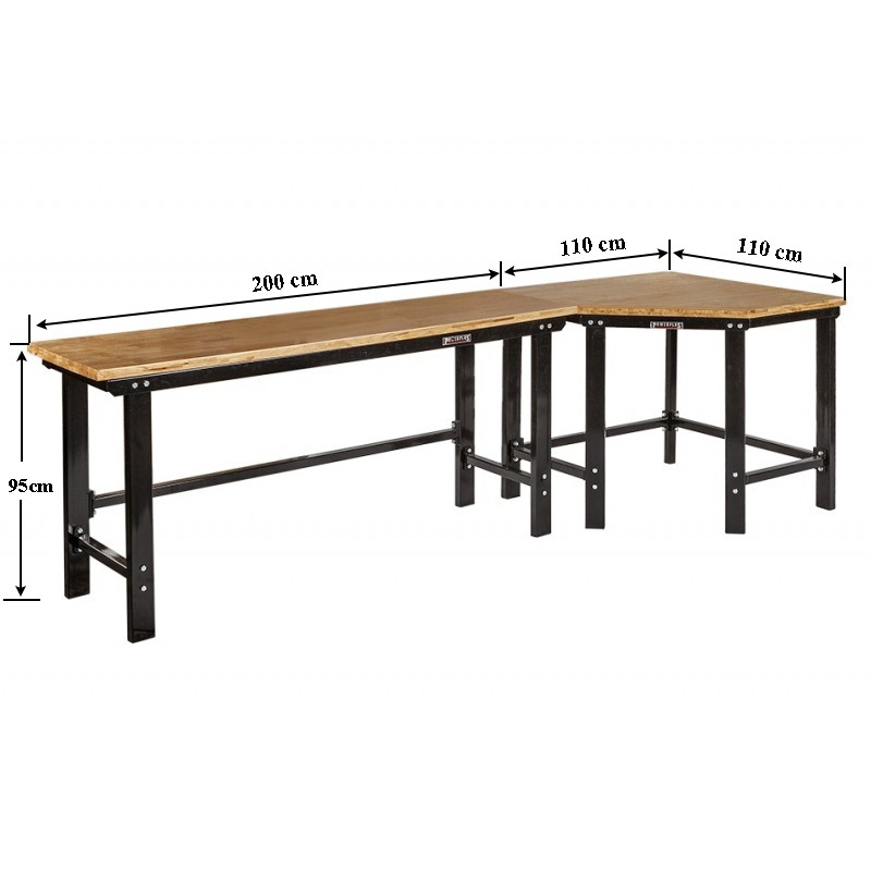 Degelijke werkbank afm. 200 x 61 x 95 cm. en een hoekstuk afm. 110 x 110 x 95 cm.