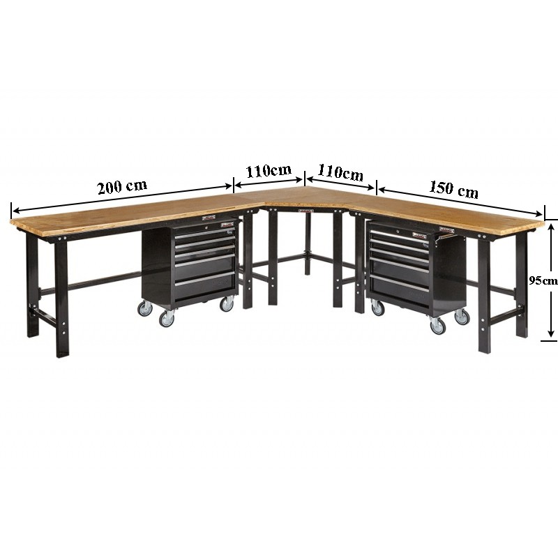 Werkbank hoekopstelling van 310 x 260 cm bestaande uit: