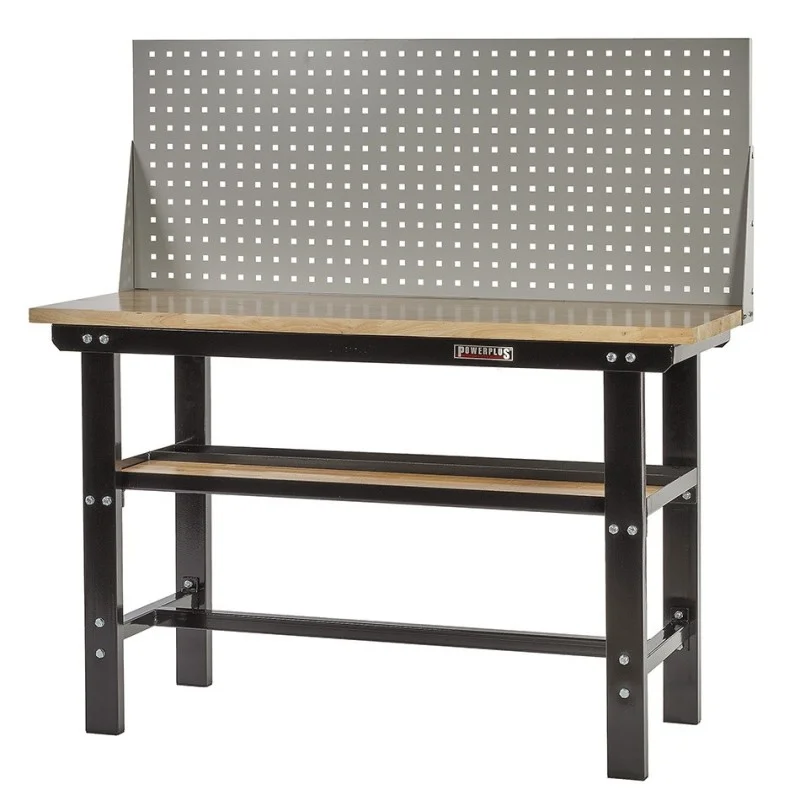 Topkwaliteit werkbank van Powerplustools met oerdegelijk ijzeren frame en poten van dikwandig kokerprofiel (80 x 40 mm.) Deze professionele zware werkbank wordt geleverd inclusief een glad gelakt vingerlas verlijmd hardhouten blad van 3,6 cm. dik. Een ideale stalen werkbank voor school, autogarage, werkplaats, particulier. Deze industrieel inzetbare werkbank is verkrijgbaar in de kleuren rood en zwart. De hoogwaardige poedercoating is UV bestendig en het frame wordt samen geschroefd met gegalvaniseerde bouten en moeren (boutkwaliteit 4.8 )