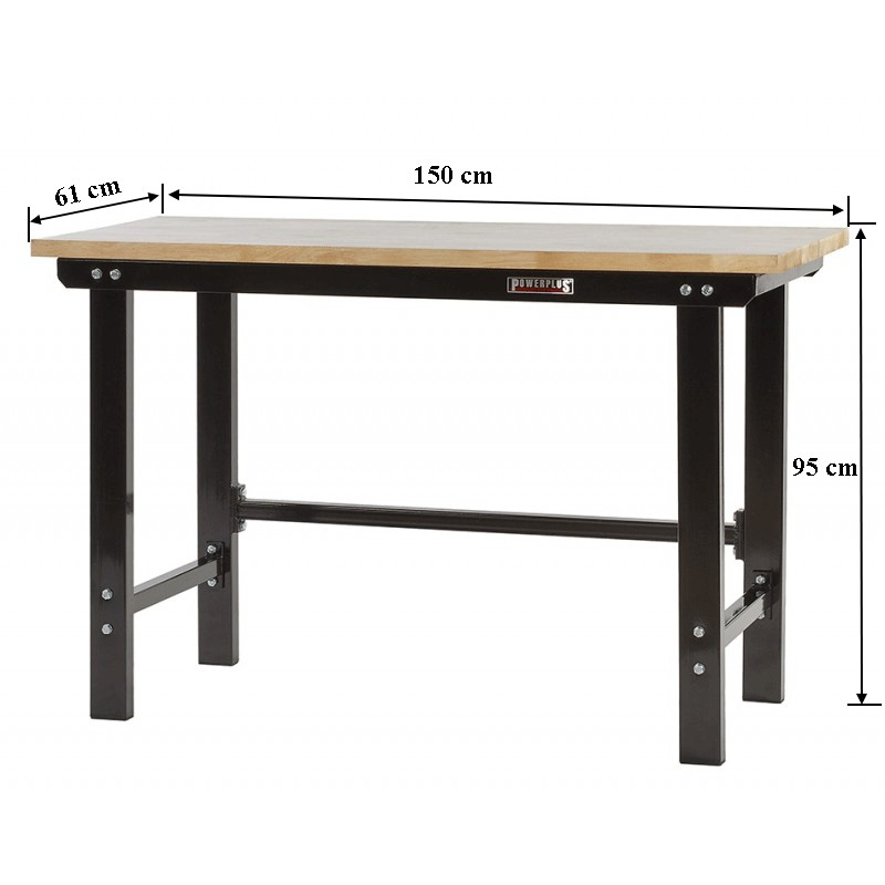 Topkwaliteit werkbank van Powerplustools met oerdegelijk ijzeren frame en poten van dikwandig kokerprofiel (80 x 40 mm.) Deze professionele zware werkbank wordt geleverd inclusief een glad gelakt vingerlas verlijmd hardhouten blad van 3,6 cm. dik. Een ideale stalen werkbank voor school, autogarage, werkplaats, particulier. Deze industrieel inzetbare werkbank is verkrijgbaar in de kleuren rood en zwart. De hoogwaardige poedercoating is UV bestendig en het frame wordt samen geschroefd met gegalvaniseerde bouten en moeren (boutkwaliteit 4.8 )