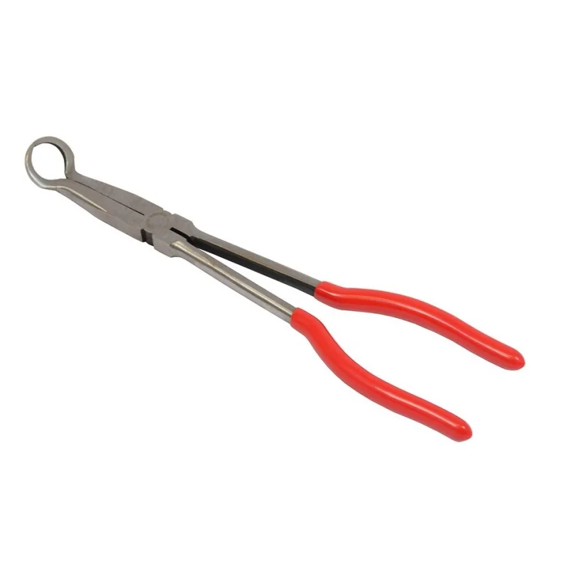 Extra lange platte rondbektang 45 graden gebogen, lange bekken, geschikt voor het grijpen van bougiestekkers en andere ronde delen.