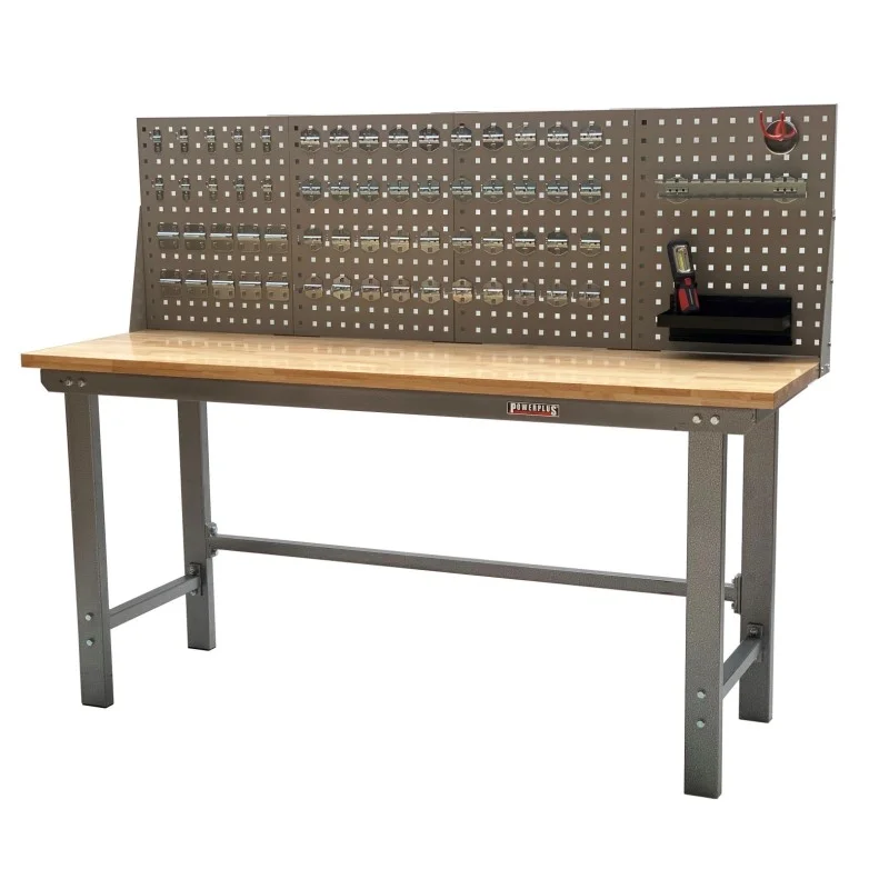 De ideale werkbankset incl. achterwand voor gereedschap en bijpassende 60-delige haken set voor een voordeelprijs.