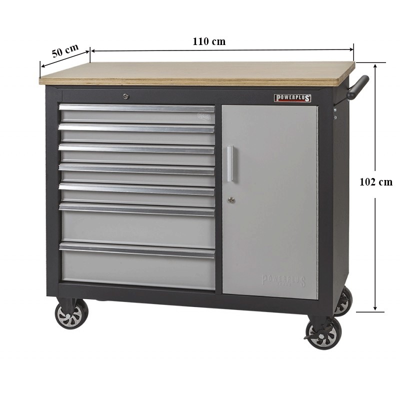 Deze robuuste gereedschapswagen met kogelgelagerde lades inclusief quick-lock snelsluiting en afsluitbaar met sleutel beschikt naast de 7 laden over een ruime handige gereedschapskast voor het opbergen van grotere gereedschappen zoals boormachines spuitbussen , jerrycans e.d.