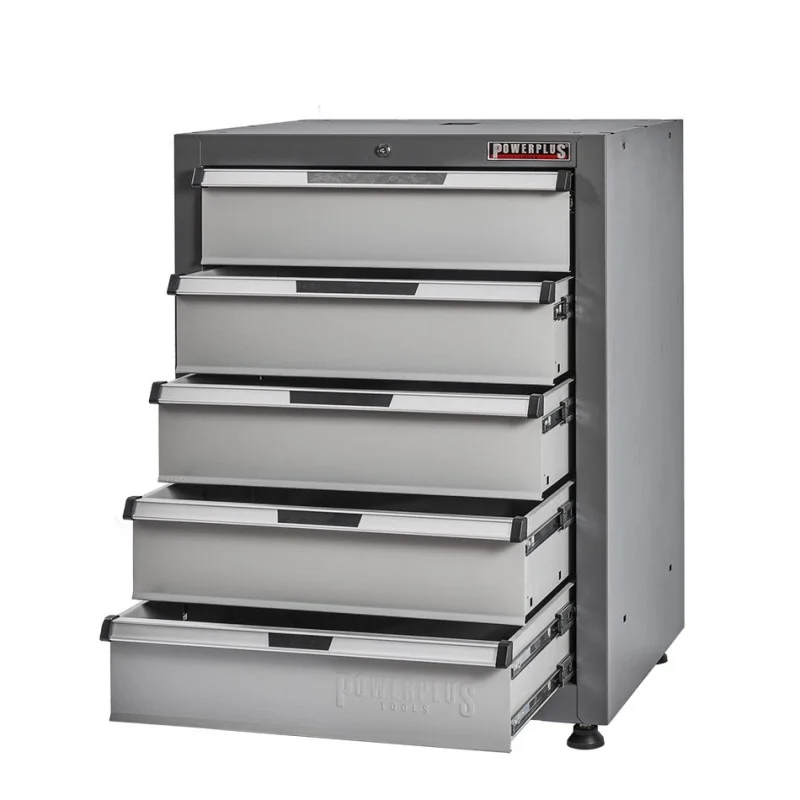 Werkplaatskast met 5 Lades – Elite Line – Afsluitbaar – 70 × 54 × 92 cm – Grijs – Powerplustools