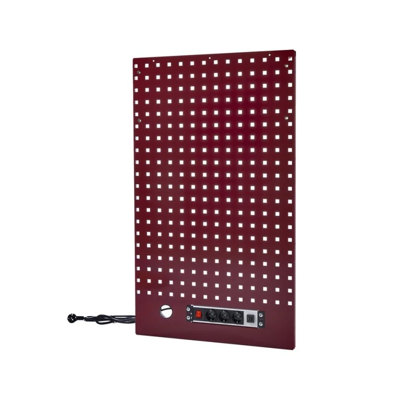 Gereedschapsbord donkerrood 61,4 x 105,2 cm x 2,4 cm. met 3 x stopcontact en 2 x USB poort voor Heavy Duty werkbankserie