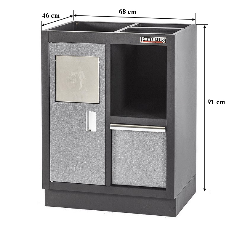 Werkplaatskast met afvalbak en lade + papierrolhouder.