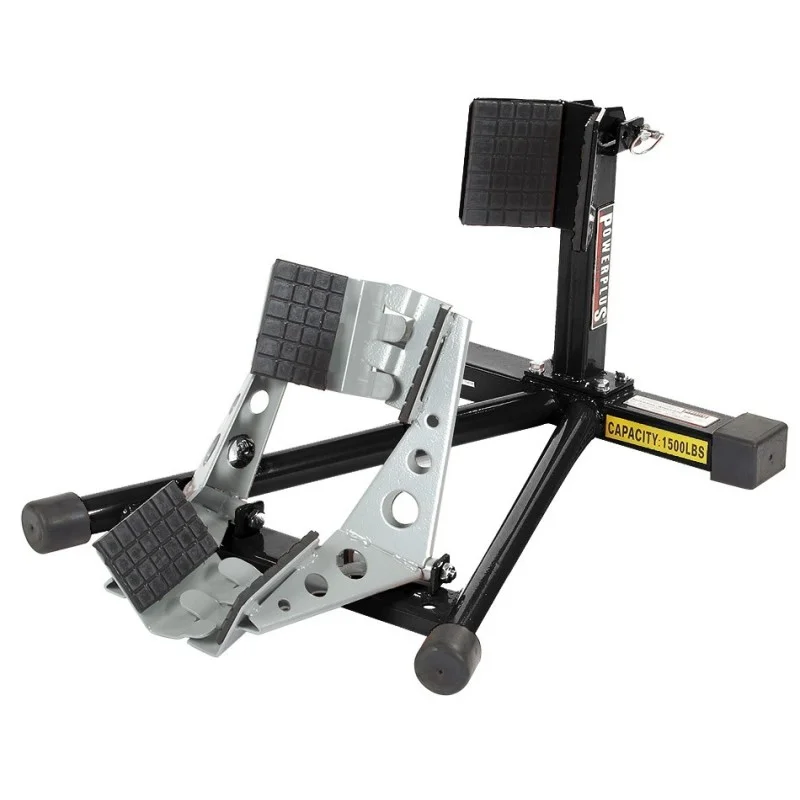 Voor "normale" motorfietsbanden zoals een gebruikelijk 17" wiel met een 110 mm band adviseren wij de inrijwielklem PP-T 0377.